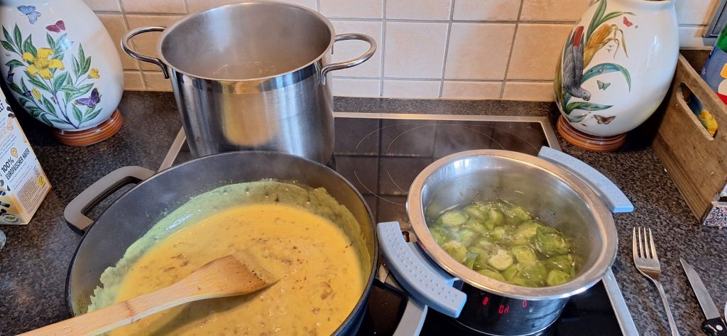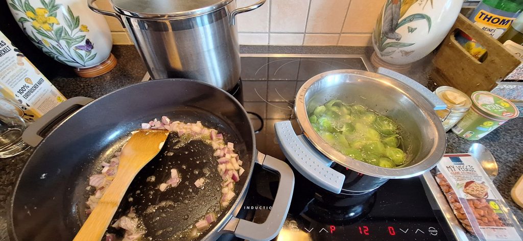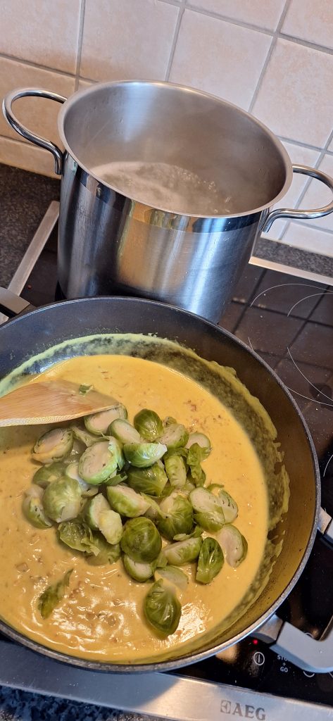 Den Rosenkohl in Salzwasser ca. 20 -25 Minuten garen.