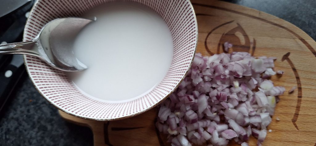 2 geh. EL Kartoffelmehl – mit 6 El Wasser verrühren