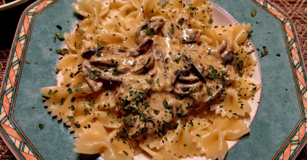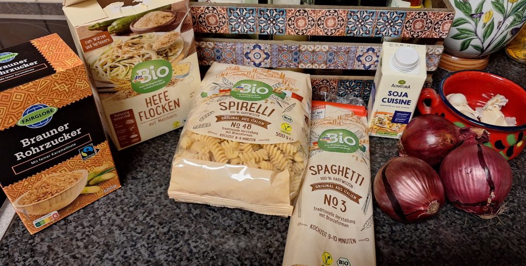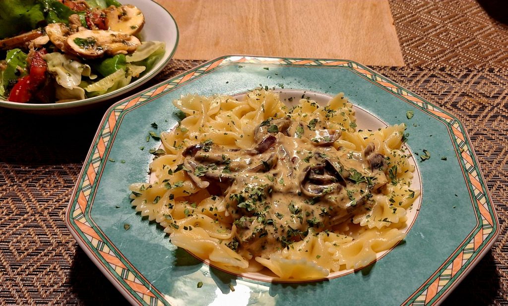 Pasta mit Zwiebel Sahnesoße Vegan