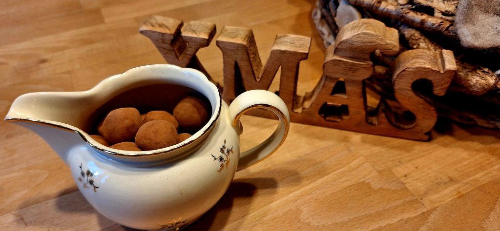 Die geformten Kugeln in Backkakao wälzen, ein paar mal durch die Hände gleiten lassen ( so geht überschüssiges Kakaopulver ab) und im Kühlschrank aufbewahren.